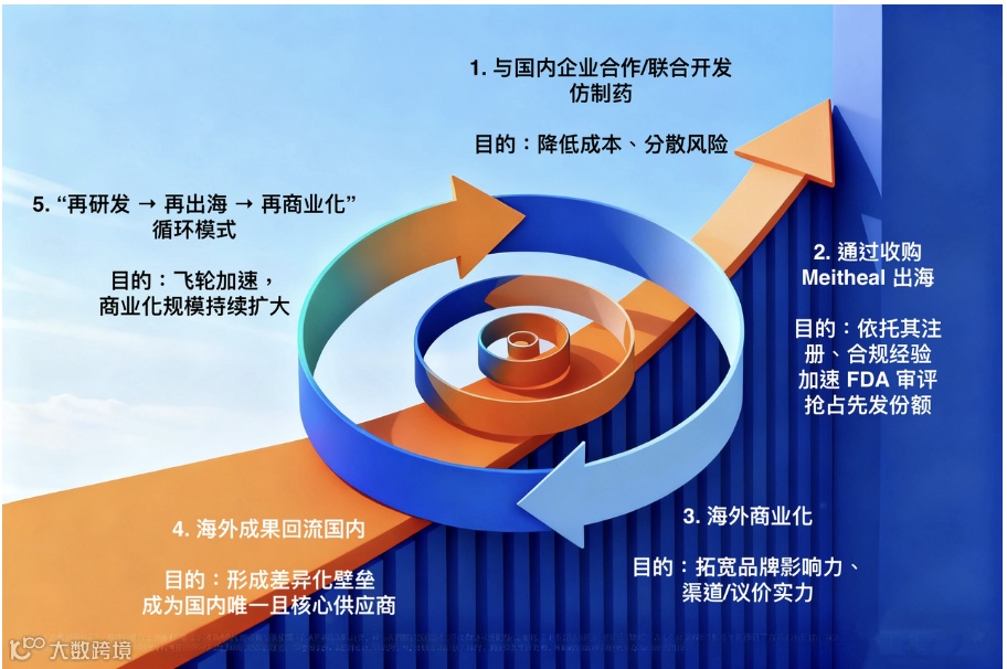 通过仿制药简略申请(ANDA)或生物制品许可(BLA)途径,引入他人成果,无需从零开始完整临床,从而大幅缩短进入海外市场的时间 。
