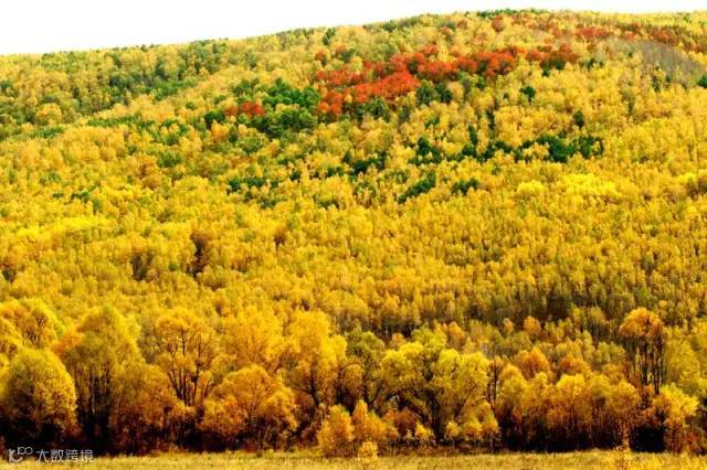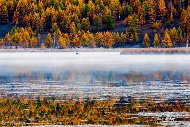 金秋,金黄的落叶松将这里装扮成童话的世界,漫山遍野的黄色,色彩浓烈厚重,有种凄美的感觉。