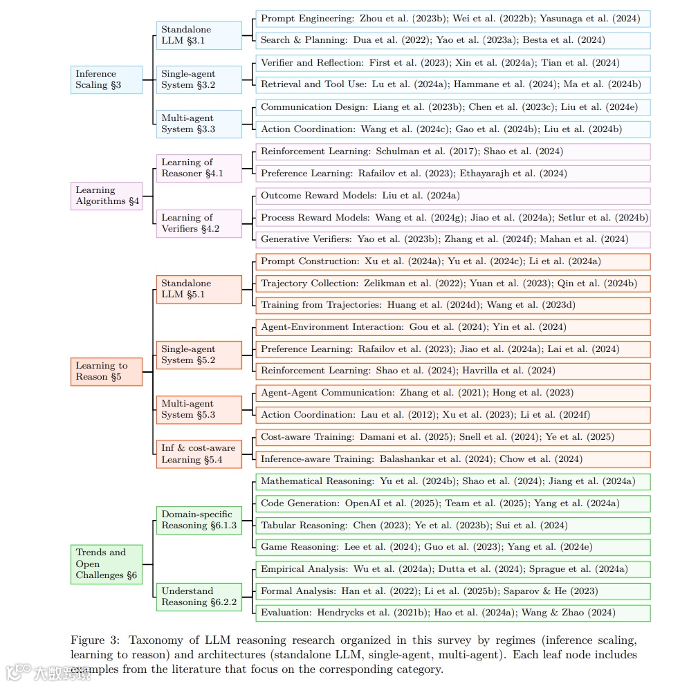 本文旨在全面总结LLM推理领域的最新进展,重点包括推理扩展(第3节)、推理器与验证器的学习算法(第4节)、学习推理方法(第5节),并在第6节归纳未来挑战[k]。