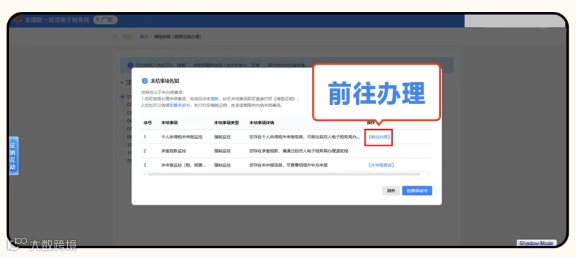 预检后如果有红色提示 “存在未办结事项”,别慌,按下面的类型处理,广州的系统都有指引: