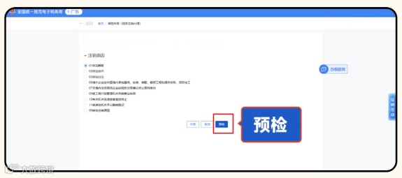 关键一步:点【预检】按钮,系统会在 1-2 分钟内核查你的税务和社保状态。