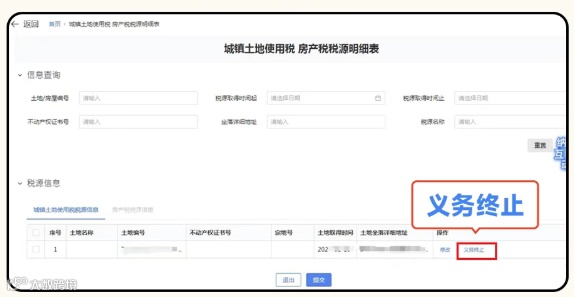 点提示里的【义务终止】,再按指引选 “申报缴纳税款”,填好租赁地址、租期,系统会算应缴税额,缴完就清了。
