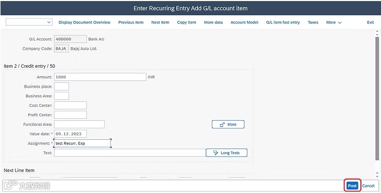 步骤 1: 输入公司代码、过账日期、凭证类型、期间、货币,然后按 Enter