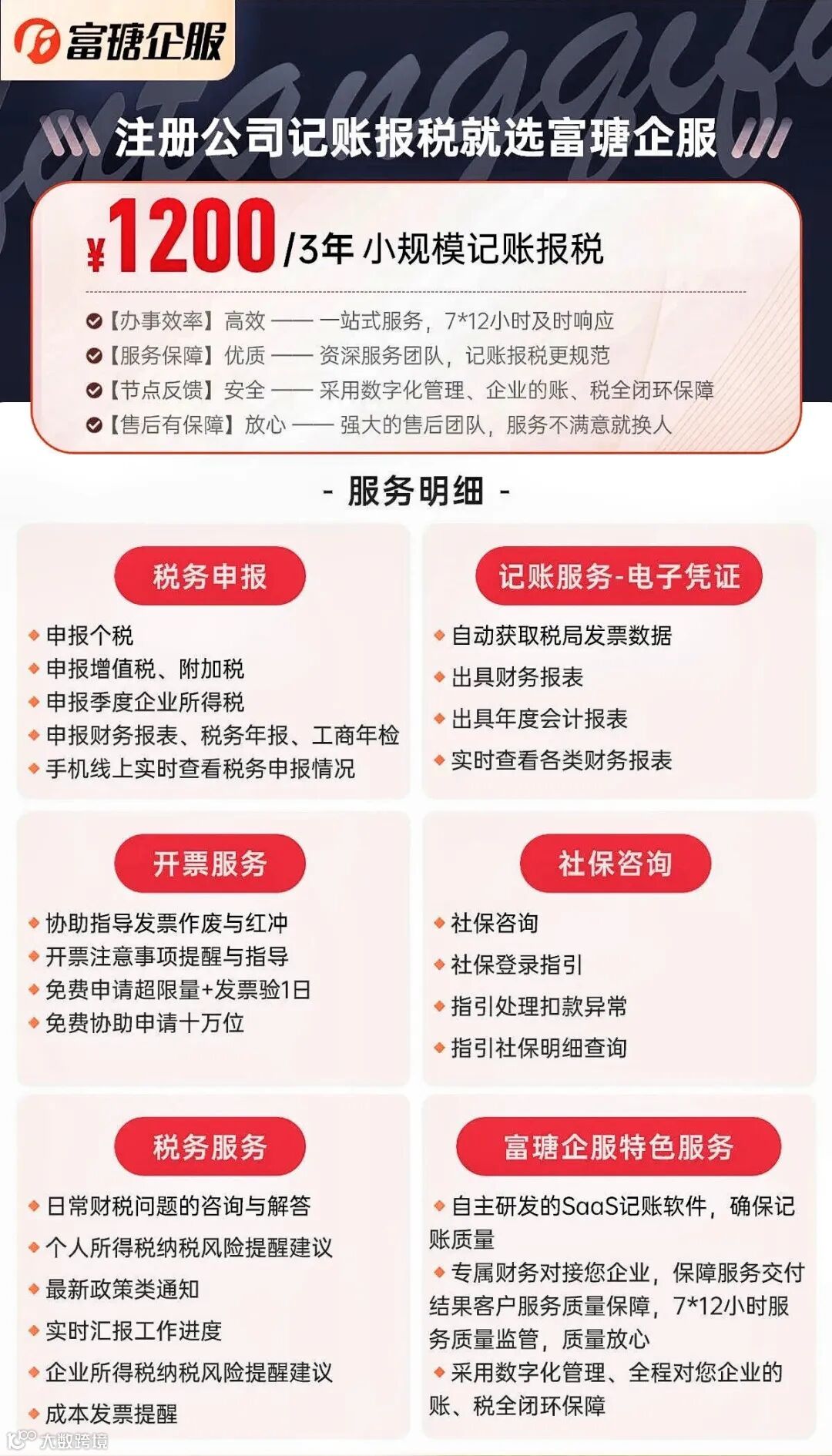 业务范围:工商注册 |工商注销| 代理记账|税务合规|财务外包|高新认定| 知识产权| 商标注册|专利申请|法律咨询等服务