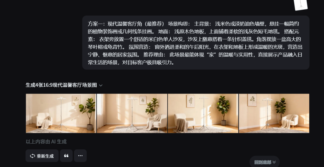 然后我们把这四个部分就是写好了之后,我们直接去发送给它就行,它生成完成之后的话,我们可以看到已经给出来相应的一个风格建议了。
