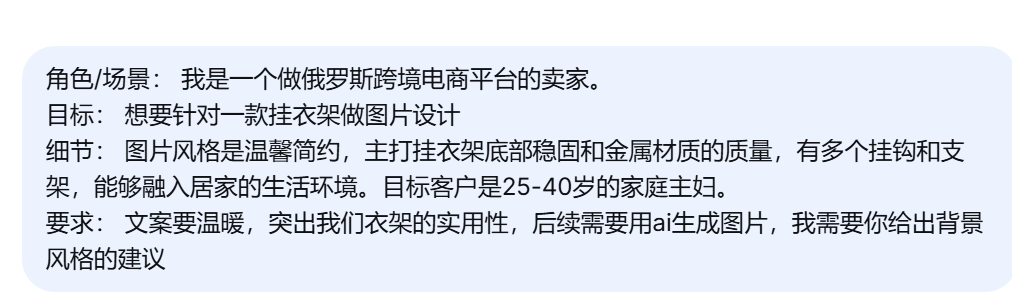 1.角色/场景: 我是一个做俄罗斯跨境电商平台的卖家。