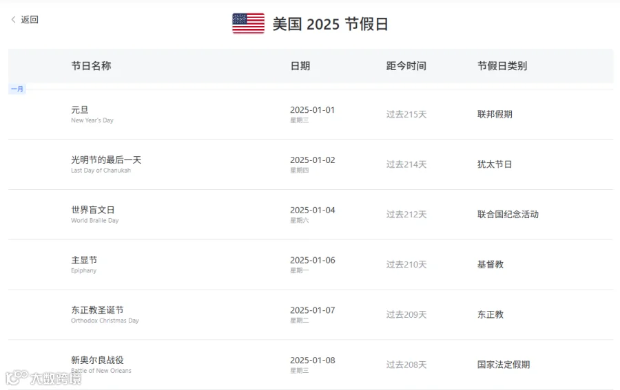 大数跨境世界各国 / 地区节假日查询工具