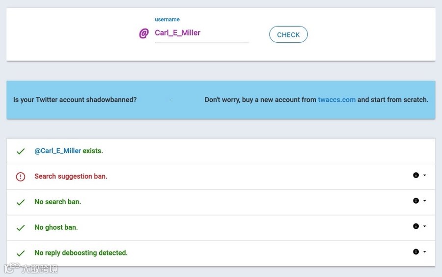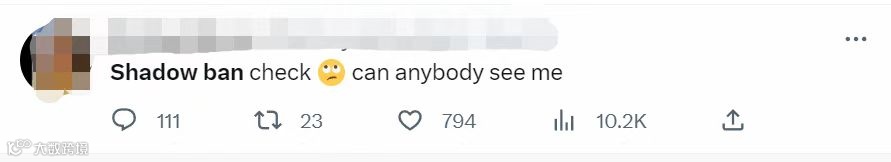 虽然Twitter等平台声称没有屏蔽账号的操作,但海外网友们可不买单,总感觉自己被”shadow ban”了,所以需要check一下,甚至有人还开发了检查是否被屏蔽的工具。