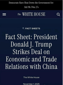 据美国白宫最新公告宣布,2025年11月10日起,美国将对中国商品(含香港和澳门)加征的20%“芬太尼关税”税率,将会下调10个百分点。此外,对中国商品(含香港和澳门)加征的24%对等关税,将会持续暂停一年。