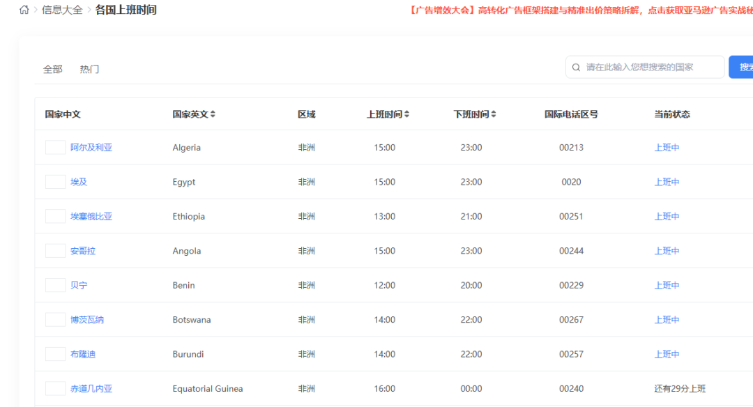 世界各国上班时间查看链接:https://www.amz123.com/tools-worktime