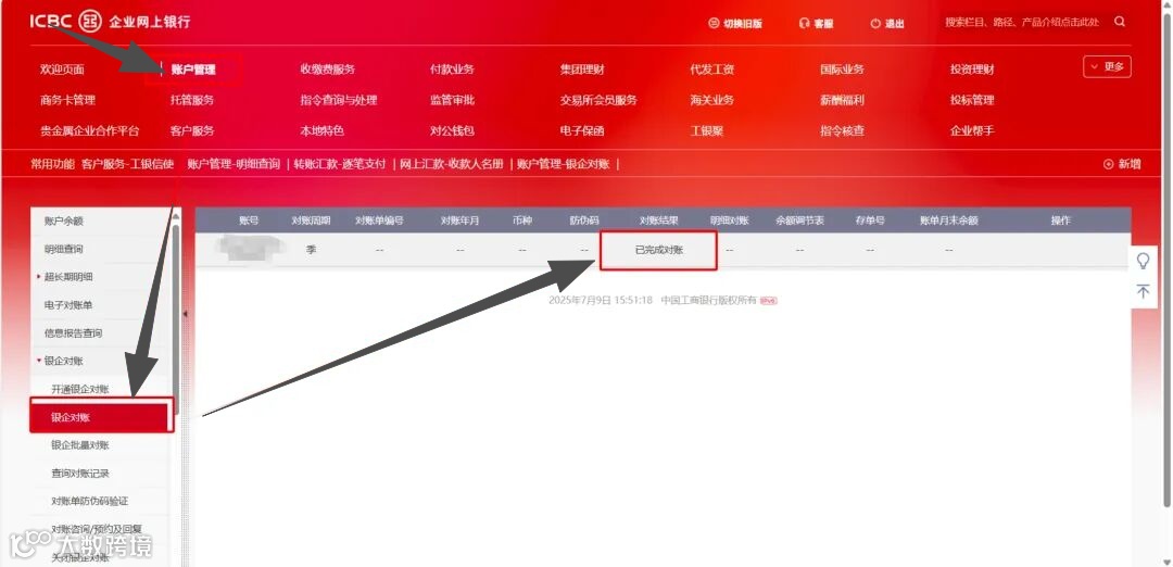 2.首页点击【账户管理】-选择【银企对账】-确认完成对账