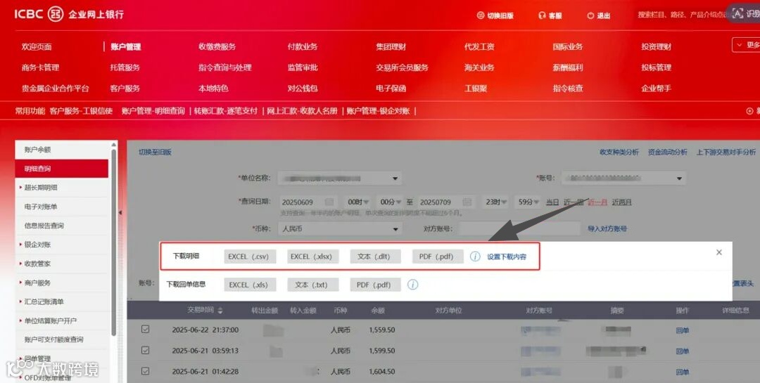 2.【账户管理】-【明细查询】-选择查询时间并点击【下载】