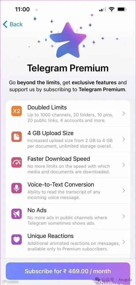第三步:向下滚动,点击选项列表中的Telegram Premium。
