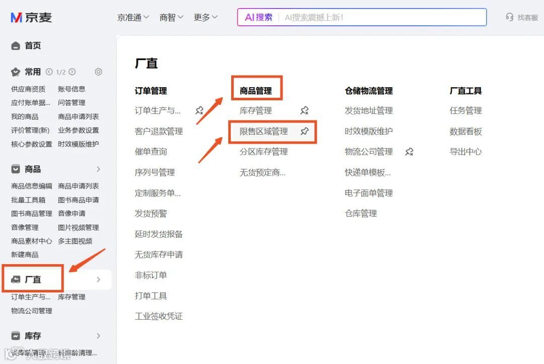 区域限购功能,自营仅针对厂直商家开放、POP针对所有商家开放。