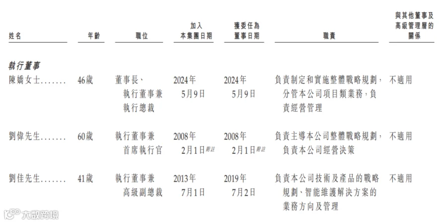 公司董事高层由3位执行董事、2位非执行董事及4位独立非执行董事组成,其中陈娇为董事长、执行董事兼执行总裁,其主要负责制定和实施整体战略规划,分管公司项目类业务,负责经营管理。