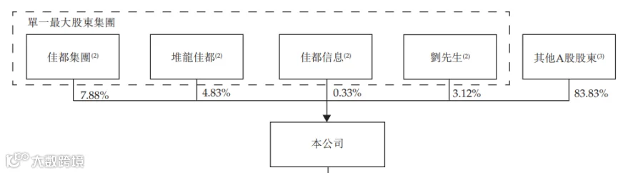 截至最后实际可行日期,刘先生有权共同控制本公司股东大会16.22%的投票权,包括:(1)刘先生直接实益拥有的3.13%;(2)由佳都集团实益拥有的7.90%(佳都集团由刘先生和海南慧思分别持有92%和8%的股权);(3)由堆龙佳都实益拥有的4.85%(堆龙佳都由刘先生和海南慧思分别持有95%和5%的股权);及(4)由佳都信息实益拥有的0.33%(佳都信息由刘先生和海南慧思分别持有92%和8%的股权)。海南慧思由佳都香港全资拥有,而佳都香港则由刘先生之女刘女士全资拥有。