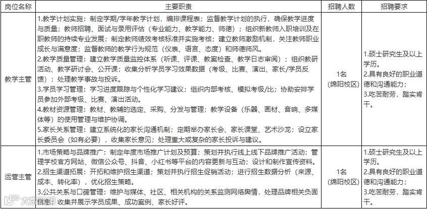 6.有学校行政管理经验者,班主任管理经验,课程开发能力、课题研究能力的优先录用;