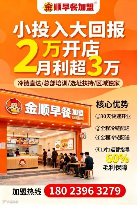 留言福利:在本文留言 “金顺加盟”,前 50 名送《早餐店运营手册》(含选址技巧、爆品配方、收银系统、店铺升级),再抽 10 人免费体验总部 “1 天探店”(看直营店如何运营)