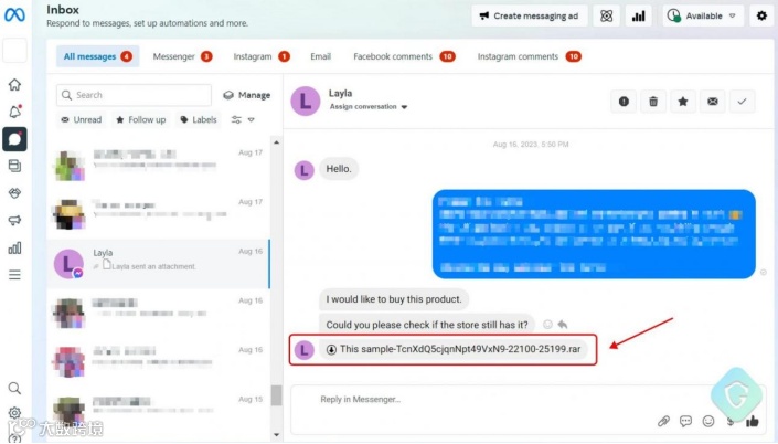 这场黑客行动主要针对Facebook企业账户。攻击者会假装侵犯版权或请求提供有关产品的更多信息,诱骗目标下载RAR/ZIP存档,其中包含一个基于Python的规避性窃取程序的下载器,该窃取程序会抓取受害者浏览器中存储的cookie和密码。