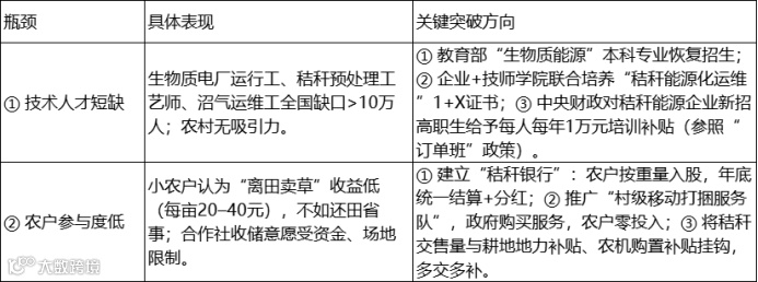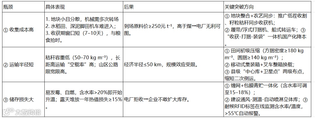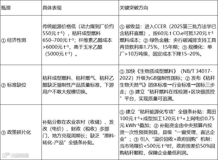 要从根本上扭转秸秆以还田为主的资源利用路径,提升秸秆能源化水平,需同步突破“收、储、运、转、市、政”六大瓶颈。