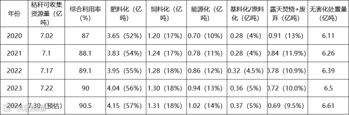 1) 肥料化:直接还田占年产生量4)5亿t的68%,为“保护性耕作”核心措施。