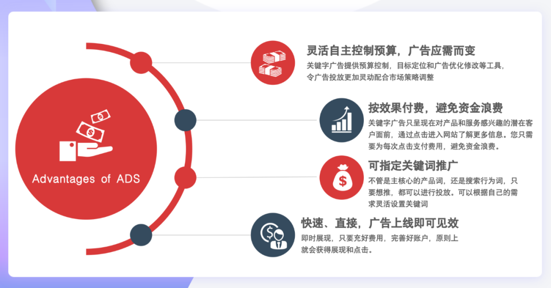 最终企业 B 的广告会排在更靠前的位置,且实际每次点击成本(CPC)可能比企业 A 更低。这就是 Google 算法的核心导向:鼓励广告主提供优质内容,而非单纯靠砸钱取胜。对 TOB 外贸企业来说,这意味着即使预算有限,只要做好质量优化,依然能抢占精准流量入口。