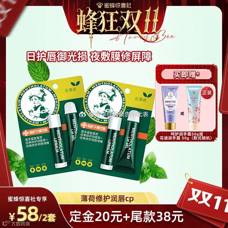 长按復制上面整段口令---打开手机淘◇寳即可-【蜂狂双11】依泉润唇膏套装秋冬保湿滋润淡唇纹防干裂口红打底