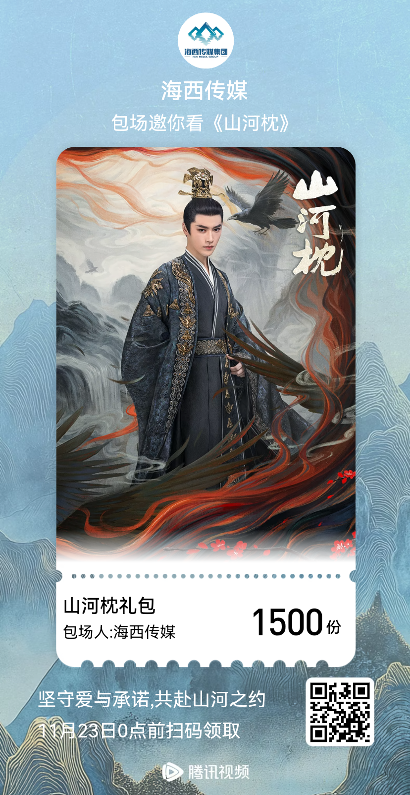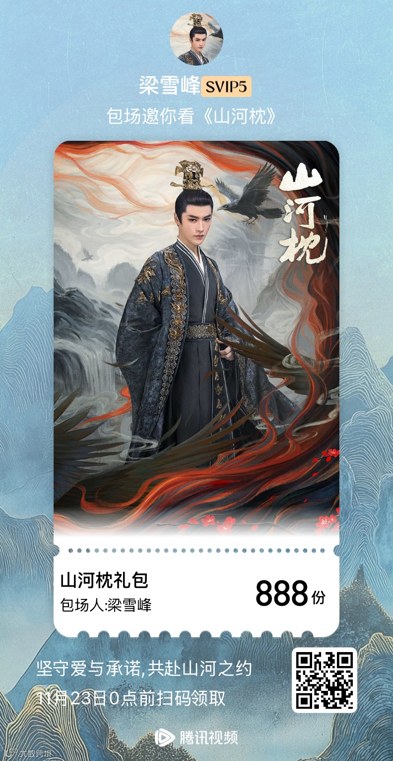 谋远梅香沁,行坚雪径开。海西传媒、梁雪峰《山河枕》云包场福利已送达~锁定腾讯视频《山河枕》正在热播中!