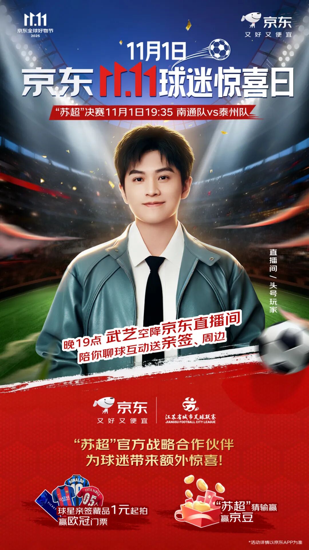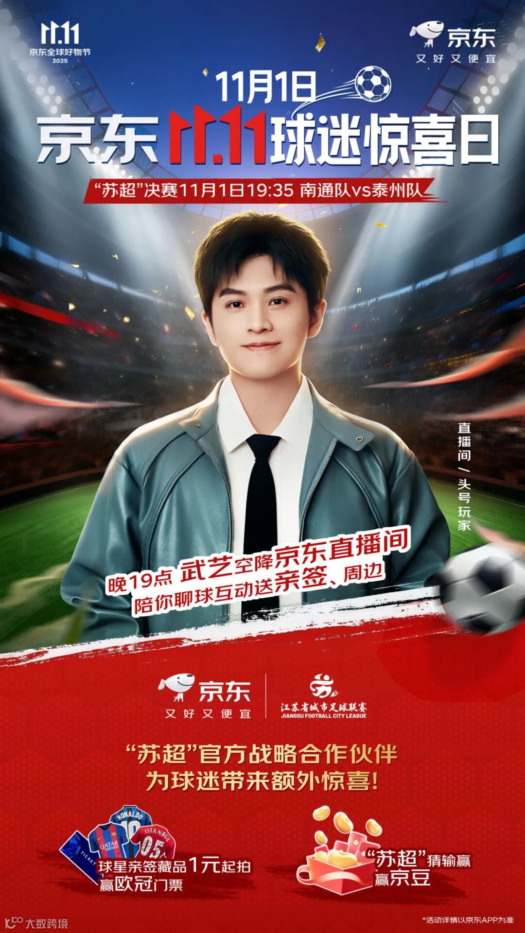 头号玩家武艺已就位!锁定「京东头号玩家直播间」,和武艺一起看苏超决赛,见证热血瞬间!