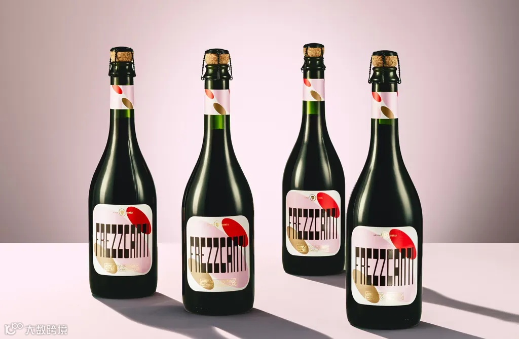 设计和品牌公司S&Co为起泡酒Frezzcanti设计了具有70年代风格的标签,纤细的无衬线字体、活泼的图案以及金箔细节融合在一个酒瓶标签上。在图形设计上,设计师采用基本的圆形,并将它们组合起来,以突出气泡感。