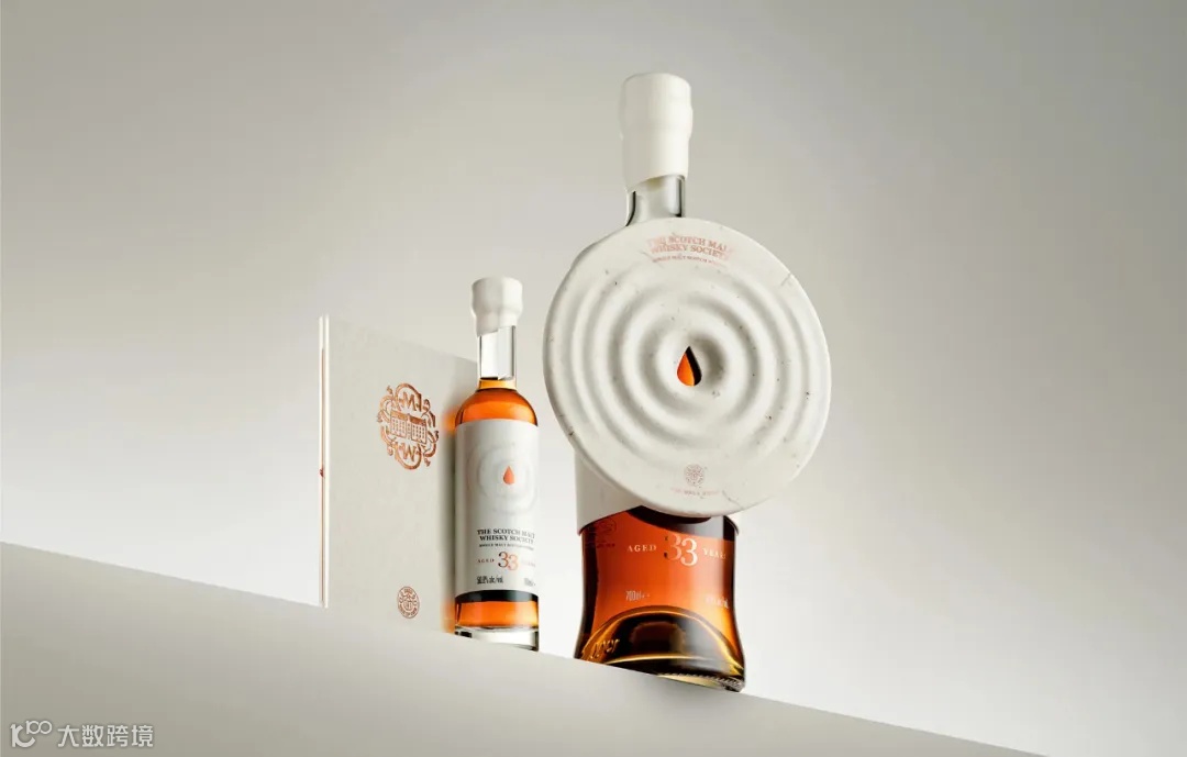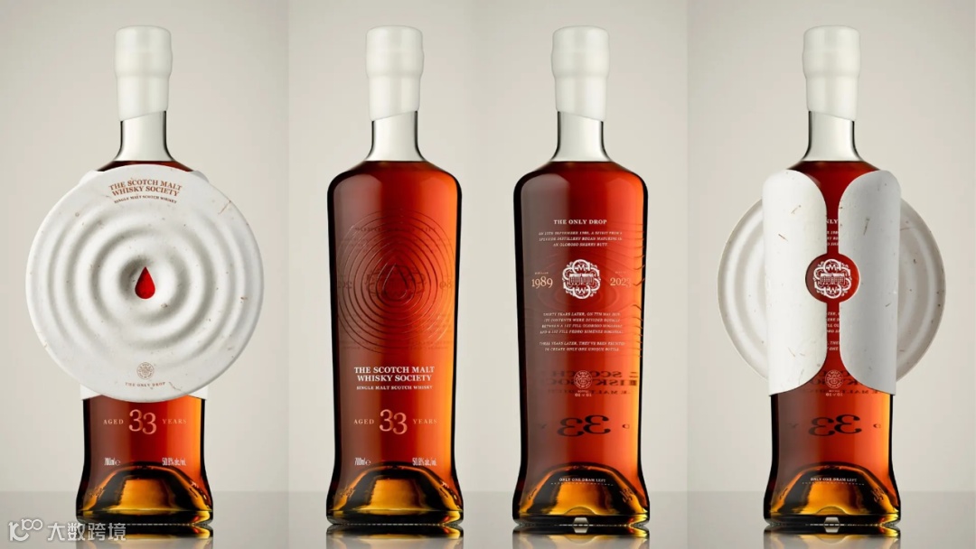 纸雕塑利用纸浆的自然张力和地心引力的向下拉力,后扣将酒瓶轮廓紧紧扣住,将其固定在酒瓶上。雕塑正面中央的单滴镂空设计让人一窥瓶内的酒液。瓶身后部的“协会”字样在雕塑的衬托下宛如一枚勋章,雕塑两侧的浮雕字样分别显示出蒸馏和装瓶日期。