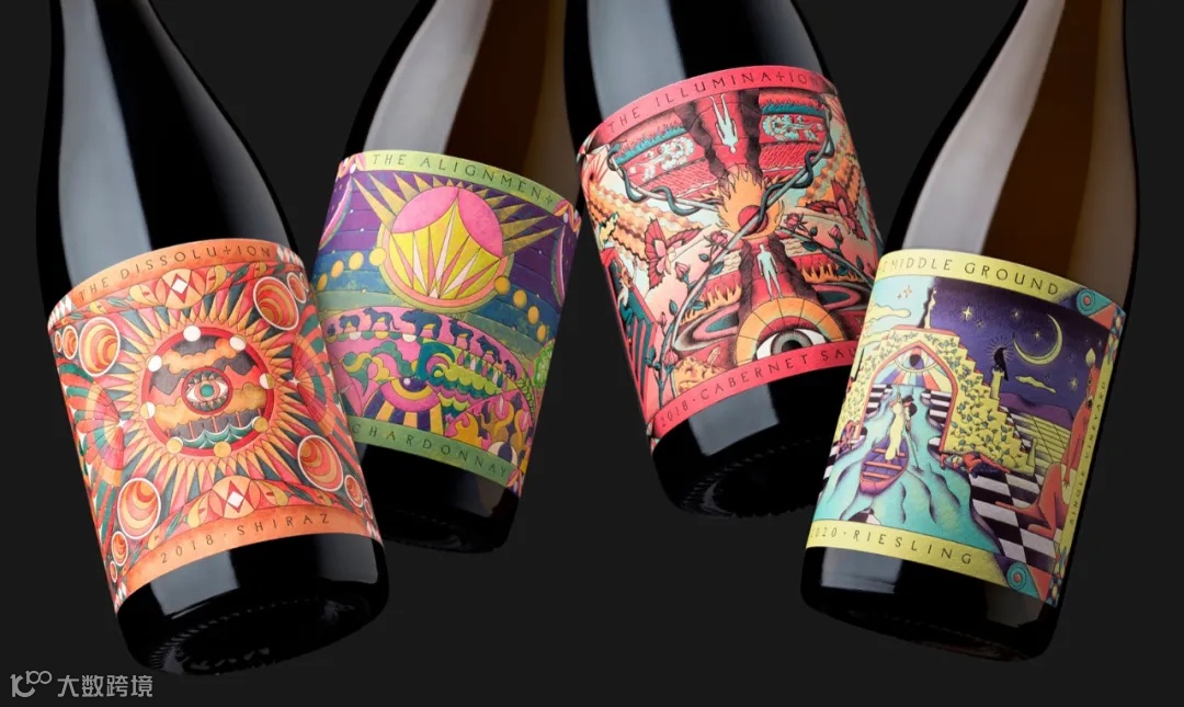 Oentologie的葡萄酒标签由Estudi JJ Bertran设计,每个标签都代表着深刻的哲学概念。设计师将复杂和深刻的哲学概念转化为图形,这些作品使消费者思考人类与环境之间可能存在的关系。其中,The Dissolution为Frankland River Shiraz,意为“自我与宇宙之间分离的幻觉解体,即自我死亡”;The Alignment为Margaret River Chardonnay意为“宇宙的所有元素和谐统一在一个本质、一个源头之中”;The Illumination为Margaret River Cabernet Sauvignon,意为“进入洞穴,穿越地狱,与恶魔战斗,发现真正的自我”;The Middle Ground为Margaret River Riesling,意为“寻求平衡,摆脱极端,达到开悟”。