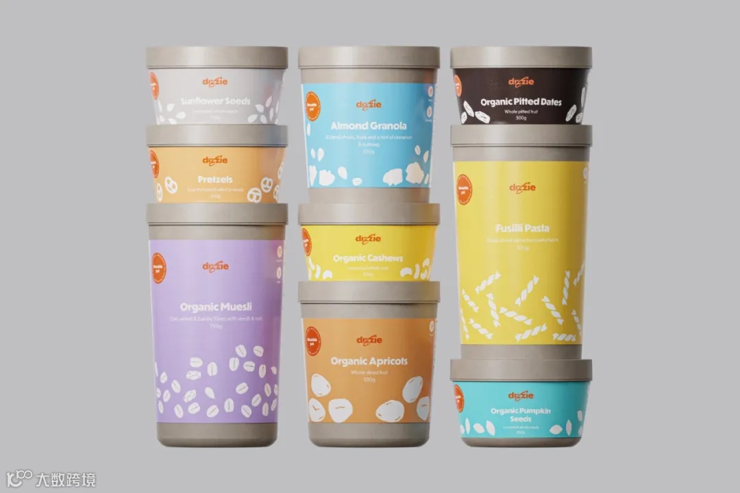 Blond公司为Dizzie's容器设计了别致的外观,为可持续购物增添了活力。包装采用经典的无衬线字体,用白色印刷盛放食物的轮廓,与活泼的背景色形成对比。Dizzie(前身为Good Club)是一家在线杂货配送服务公司,这些罐子由blond设计,可以倾倒,也可以储存;使用后由Dizzie收集、清洗和重复使用。在设计上,Blond注重产品的耐磨属性,确保产品可以被洗碗机清洗和重复使用。同时,产品尺寸也很重要,需要为不同的食物类型提供不同的尺寸,还要要注意避免因尺寸过多而给物流带来压力。此外,不使用的罐子需要堆放在一起,以节省仓库空间并减少运输时的碳足迹。最后,这些产品设计需要确保返回Dizzie仓库时能够简单有效地进行清洁。