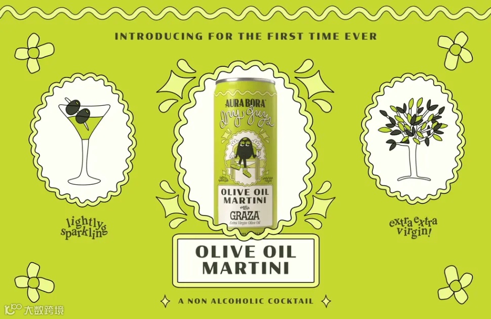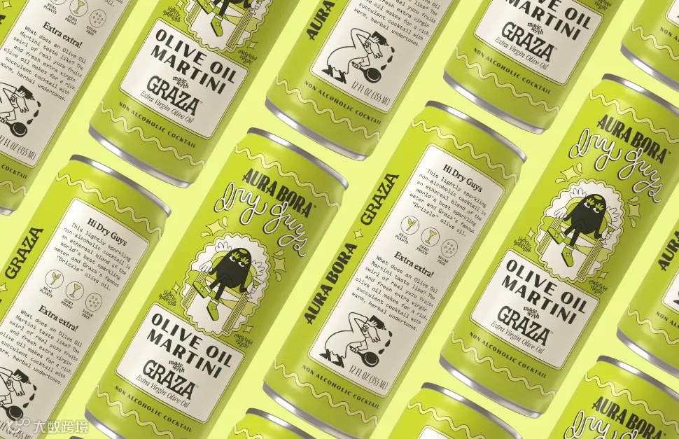 Aura Bora和Graza推出了首款无酒精Olive Oil Martini,橄榄油正式进入了无酒领域。这款罐装无酒精饮料被命名为“Dry Guys”,将Aura Bora的气泡水和Graza的特级初榨皮夸尔橄榄油巧妙地融合在一起。