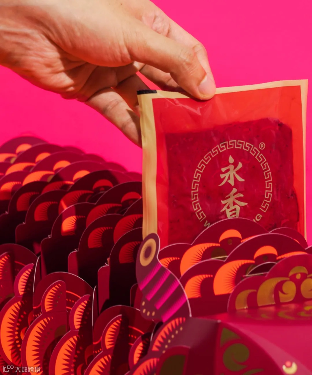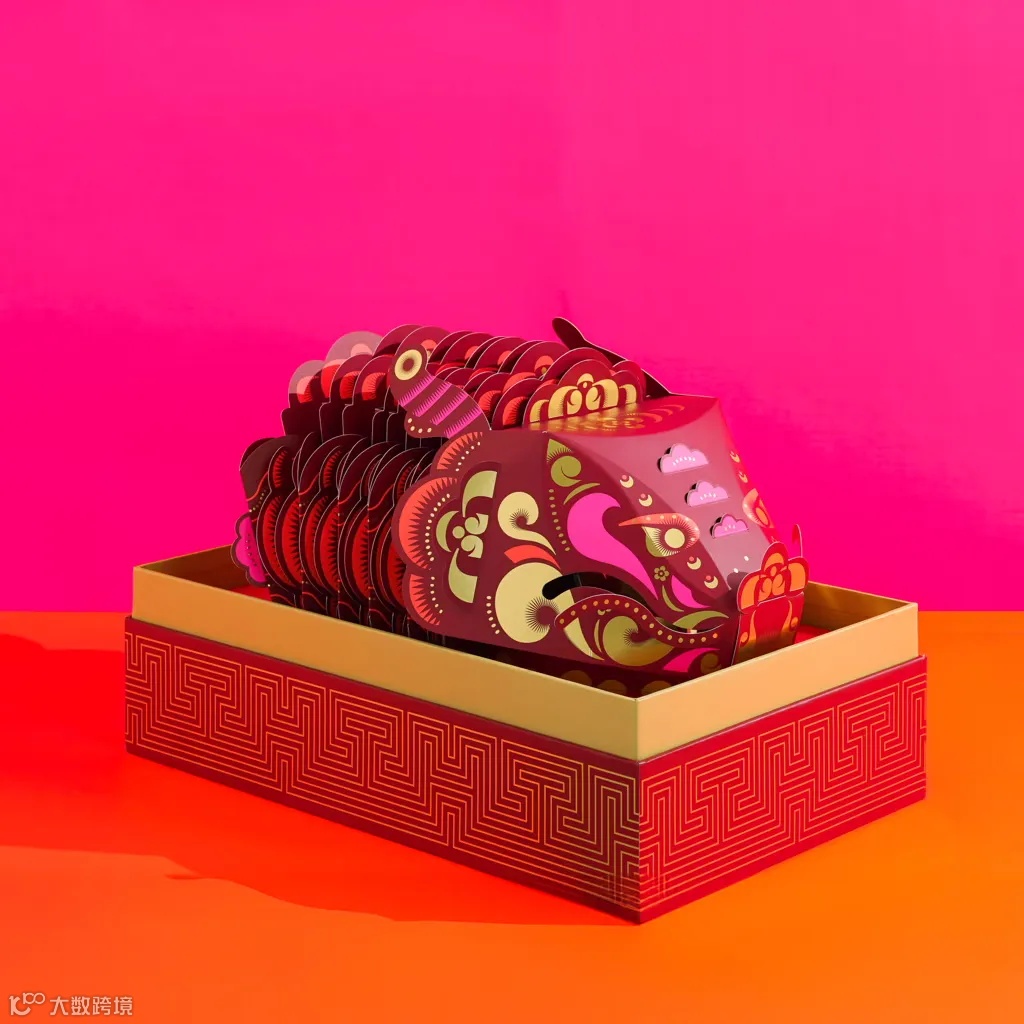 马来西亚创意工作室Fictionist Studio为肉干零食品牌Wing Heong设计了春节限量版礼盒装。这个春节限量版礼盒装是一条近一米长的纸龙,纸龙和纸龙下方的盒子均能盛放零食。纸龙身体可以伸缩,由一个个类似口袋的部件连接,口袋中插有真空包装的肉干。纸龙身上的颜色主要为红色、粉色、橙色和金色,印有金箔,打开龙嘴里面还藏有红包,适合春节的氛围。