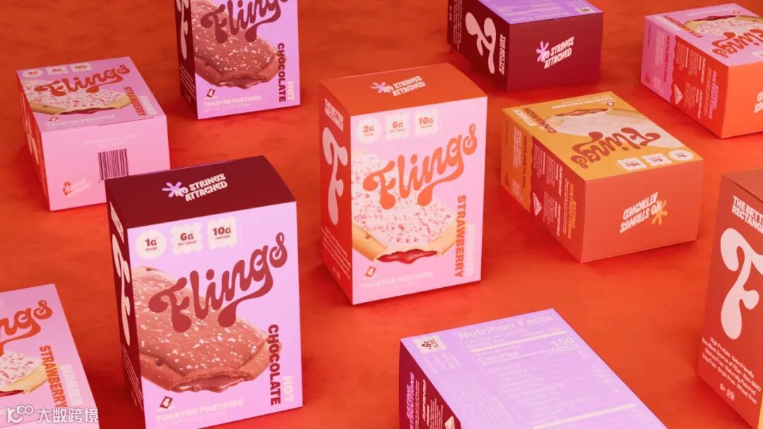 Blurr Bureau为Flings设计的包装给成年人的零食带来了一阵童趣。Flings的包装由食品企业家Dino Vassiliou 和Benjamin Outmezguine设计,展示了其生酮友好型、无麸质、无人工色素的烤面包片零食产品,体现了俏皮活力。设计捕捉到了怀旧、童真和欢乐的精髓,将消费者带入数字化时代之前的时光。既吸引了注重健康的成年人,又保持了该品牌轻松愉快的精神。