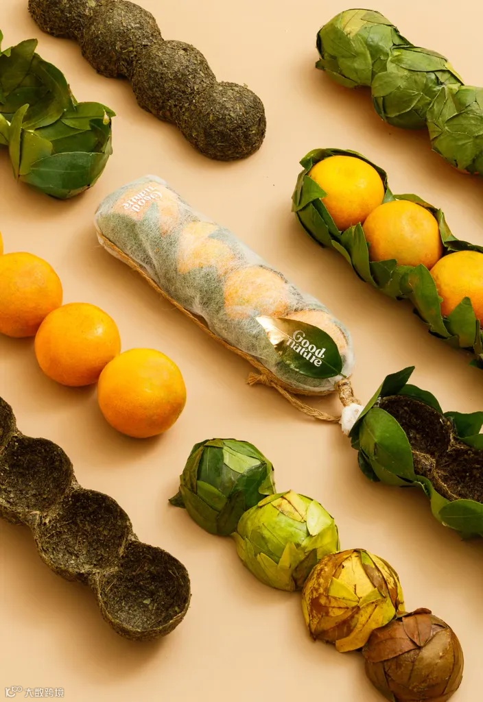 Goodnature将可持续发展精神融入橙子包装中。除了作为包装的主要作用外,该产品100%来自大自然,也100%回归大自然。在完成其作为包装的主要用途后,它也将回归大地时变成一种天然肥料。此外,包装还具有指示橙子新鲜度和理想食用时间的功能,叶片的颜色反映了橙子的年龄。绿色的叶片表示橙子刚采摘不到5天;黄叶在10天后出现,表示橙子处于成熟期,可以食用,味道最佳。随着橙子的成熟,30天后出现褐色叶片,表明橙子的最佳口味可能会减弱。最后,在365天内,包装返回土壤,成为天然肥料。Goodnature的设计代表了完整的生命周期,体现了和谐、可持续发展以及对生活中相互联系的尊重。