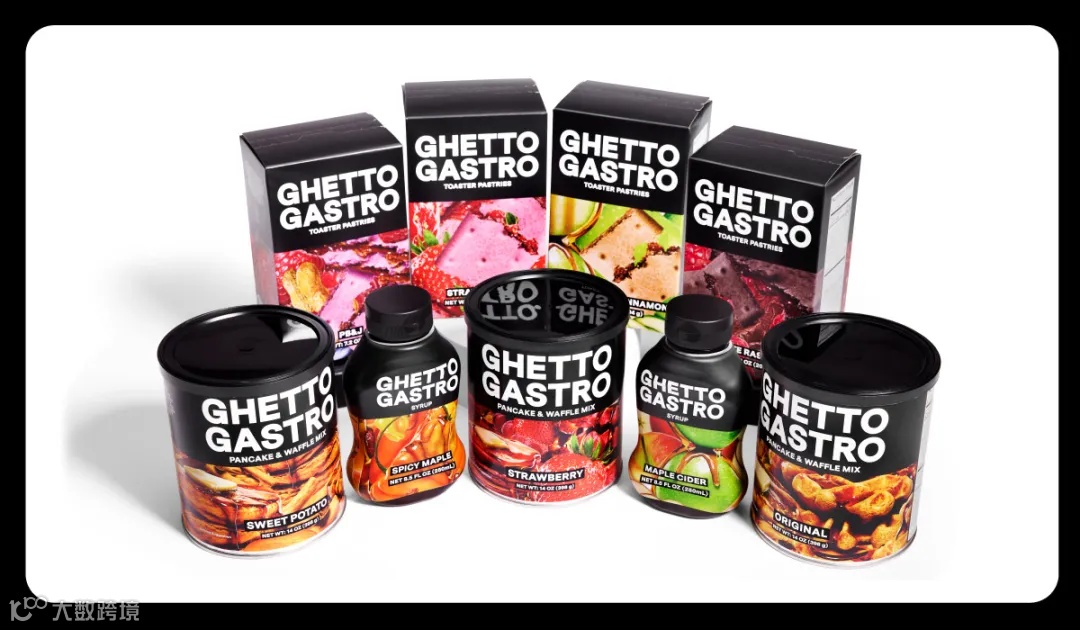 Ghetto Gastro推出的早餐产品系列,包括煎饼和华夫饼预拌粉、需要烤面包机制作的糕点以及枫糖浆。据Dieline介绍,Ghetto Gastro的包装由New Studio设计,Brooklyn brand and design company Center协助设计,包装整体看起来更像是一本高端时尚杂志。包装上的华夫饼、草莓和黏糊糊的糖浆图片让人食欲大增,跃然于货架之上。