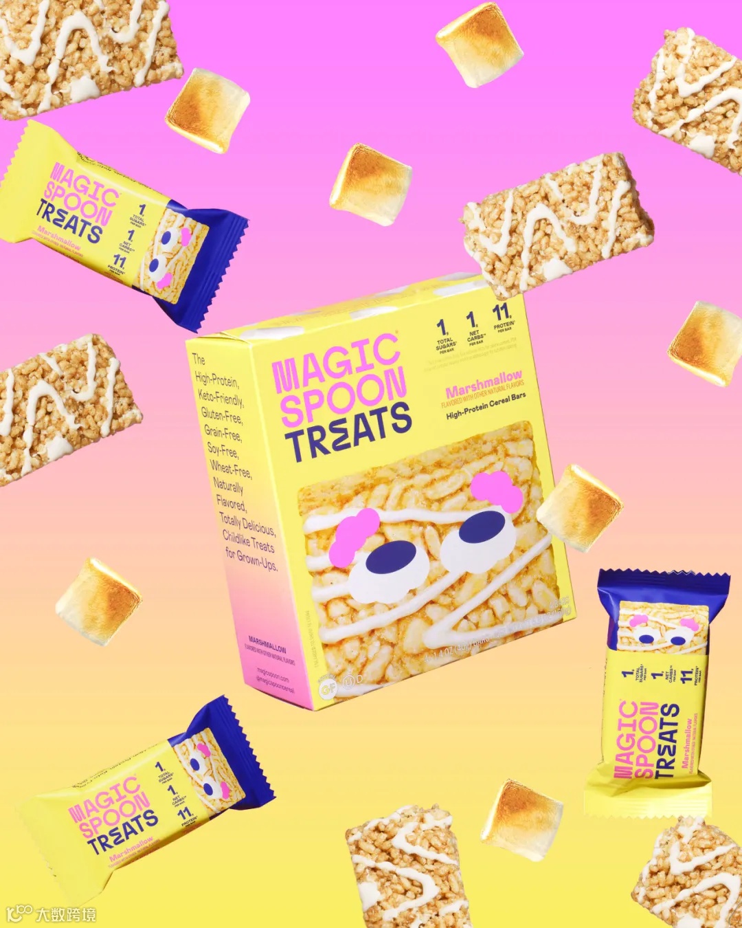 生酮友好型早餐谷物品牌Magic Spoon每份仅含1克糖、1-2克净碳水化合物和11克蛋白质。Magic Spoon Treats的新品包装和品牌设计由品牌创意总监Dhiya Choudary领导,其团队与设计公司CENTER合作,并由Juan Molinet绘制插图。新设计在其核心麦片盒和新包装之间保持了清晰的视觉关系。同时创造了一种受Magic Spoon logo启发的定制字体和徽标“treats-ment”。此外,新设计让麦片本身成为新包装的主角,并通过一系列俏皮的表情将麦片拟人化。