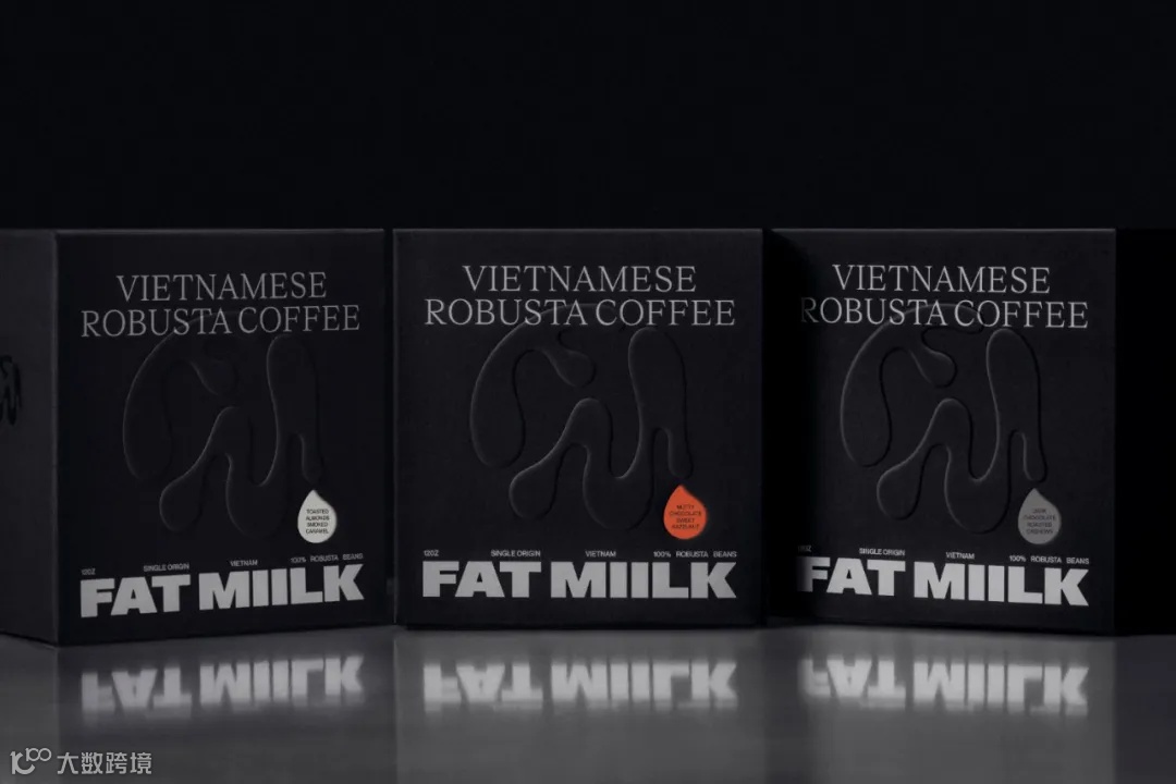 Truffl为越南咖啡品牌Fat Miilk设计的包装和产品都采用了时尚、经典的黑白两色,包装上最大的亮点是凸起的字母“F”和“M”,象征着牛奶旋转成咖啡,呈现出类似气泡的效果。包装上贴有彩色咖啡液滴形贴纸,看起来像是从“F”和“M”凸起图案上滴下来,彩色贴纸也起到了区分口味的效果。包装盒的两侧有一些小而重要的细节。一面是经过UV处理的logo,闪耀着微妙的光泽;另一面则列出了每种咖啡特有的风味说明,能够使消费者了解到盒内咖啡的风味。包装盒顶部有一个撕条,上面印有Fat Miilk的徽标。撕开撕纸条,就能看到品牌标语“Vietnamese Coffee That Slaps”。