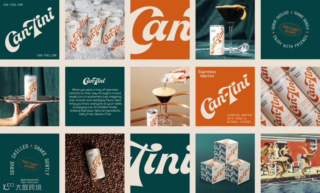 Can-Tini是即饮浓缩咖啡马提尼品牌,罐子由Saint Urbain设计,体现了复古美学。品牌名用橙色的文字醒目地印刷在罐体上,文字粗重,曲线流畅,营造一种活力感。橙色、绿色和奶油色搭配相得益彰,大胆且对比鲜明的色彩组合增强了易读性并产生了强视觉冲击力。