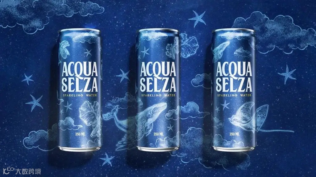 据品牌介绍,Acqua Selza作为阿联酋市场的新进入者,希望能颠覆气泡水的品类。品牌设计希望创造一种身临其境的体验,围绕选择和探索的概念以“闪耀的想象力”为出发点,设计了一款具有视觉震撼力的易拉罐包装。希望表达的是一个没有界限的世界,一个充满想象力和惊奇感的世界,一个完全体验式的世界。