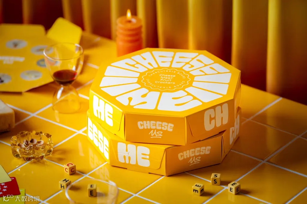 Cheese Me是一家新兴的小型企业,提供按需定制的食物,并在一小时内送达。Cheese Me将“可爱”融入其奶酪冷盘中。每个包装盒都完全不含塑料,使用食品级纸板制成。包装被定制成标志性的八角形。Cheese Me的包装有三种尺寸。“Cheese Me”、“Cheese Us”和“Cheese Everyone”包装盒分别适用于个人、小团体和大型聚会,每种包装盒都有独特的标志性颜色、尺寸和配料,确保适合各种场合。