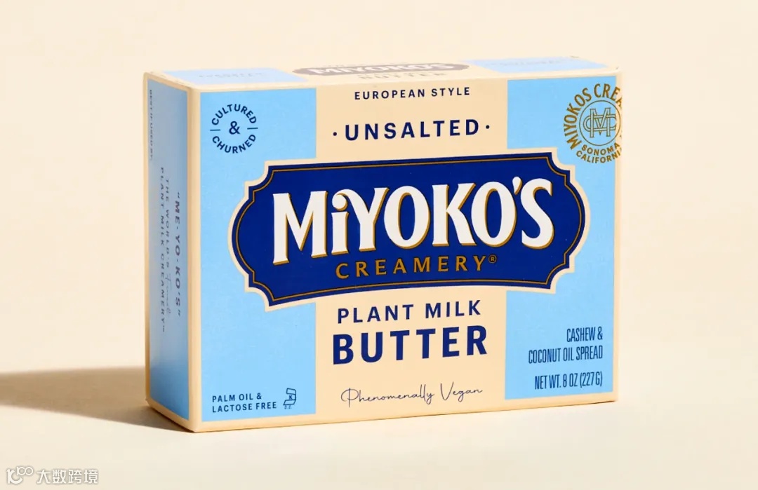 Miyoko Creamery's推出的植物基黄油和奶酪等系列产品,拥有经典温馨的杂货店外观,很容易让人将其与其所“模仿”的乳制品混淆,有老式的条纹包装和可爱的漩涡衬线文字标志。据品牌介绍,其目标不是取代传统的乳制品,而是作为一种烹饪替代品。Miyoko Creamery's为品牌重新灌输了"手工制作"、"工匠精神"的吸引力。