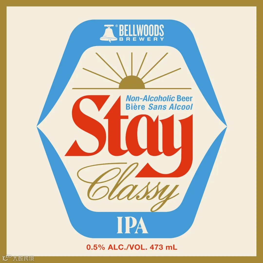 Bellwoods Craft Brewery是一家位于加拿大多伦多的精酿酿酒厂,该品牌推出了旗下首款无酒精IPA:Stay Classy IPA。设计者Doublenaut为Stay Classy IPA设计了包装,借鉴了七、八十年代Stubby Bottles的简洁和怀旧风格。包装整体以蓝色、醒目的红色和闪亮的金色等鲜艳的色彩为主,衬托出Stubby Bottles包装罐光滑的质感。