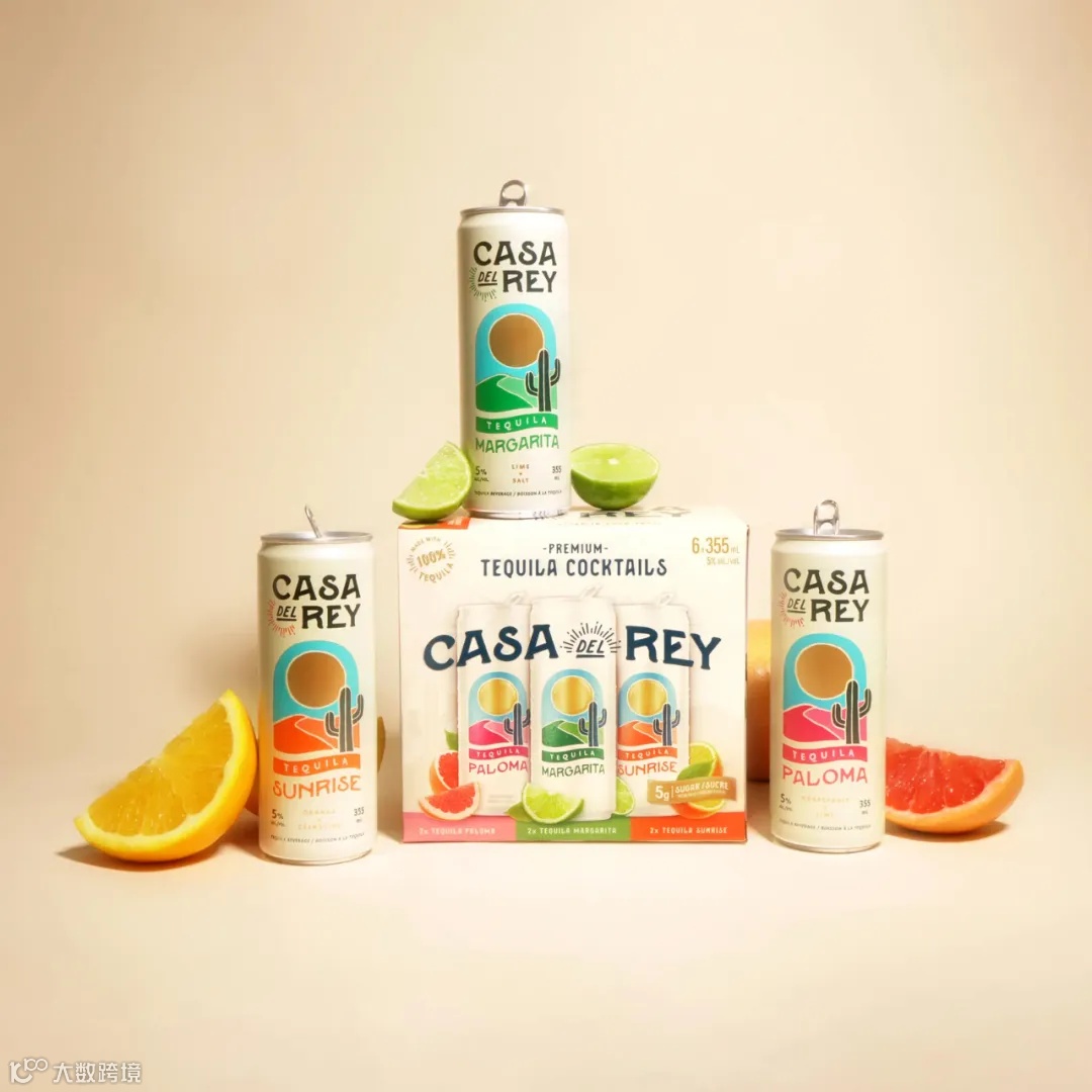 Casa Del Rey是一个龙舌兰鸡尾酒新品牌,由Ace Beverage Group(加拿大一家知名better-for-you酒精饮料公司)的内部设计团队设计推出。最终方案的灵感来自于龙舌兰生长的风景元素,罐身的视觉元素构成侧重于传递关键信息,粗体而风格化的字体有助于传递清晰易读的信息,颜色有助于区分风味。另外,设计团队还着重设计了6瓶装的纸箱外包装,在遵循加拿大政府提供的严格包装指南的基础上,在各种视觉元素上采用了专业的印刷技术,包括金色太阳、产品渲染图、突出的徽标和关键提示。