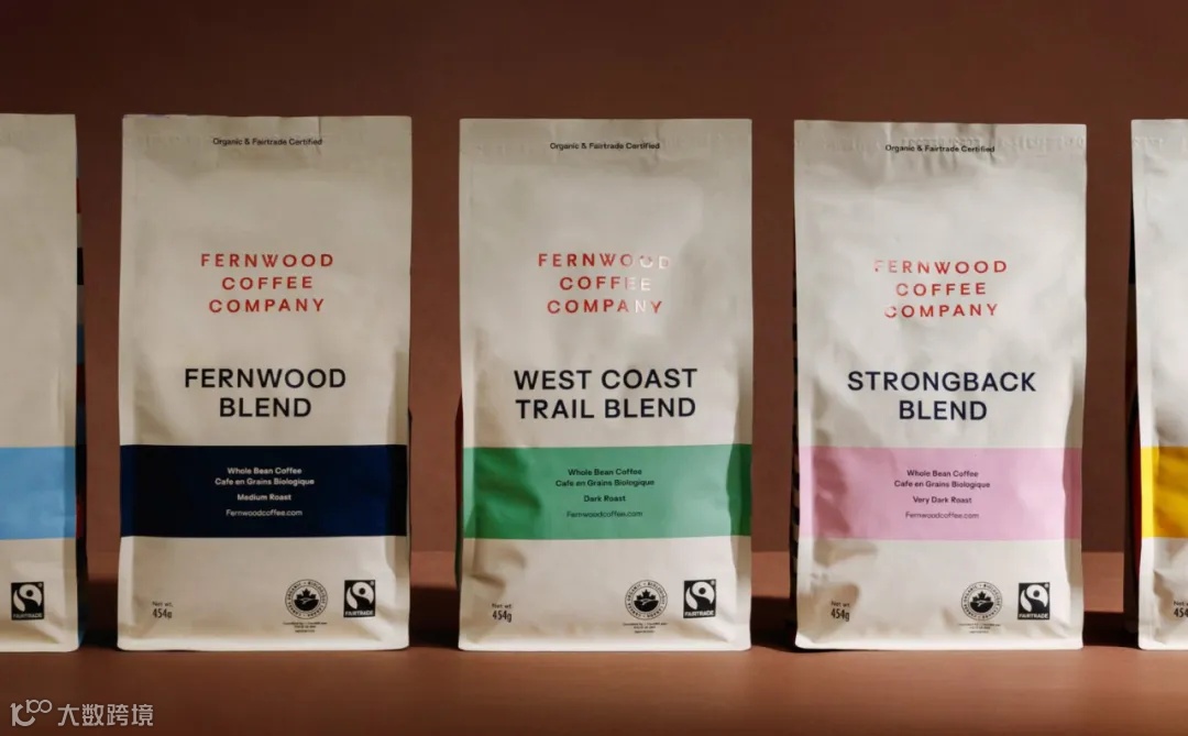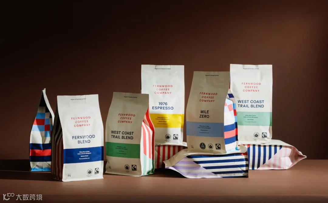 Glasfurd & Walker为咖啡品牌Fernwood Coffee设计了一款表面光滑的包装袋,每款咖啡都有不同的、标志性的外观和颜色,色调丰富绚烂。包装正面主要采用无衬线字体,包装侧面则做了五颜六色的条纹或者方格图案设计,每种咖啡侧面图案均不同。2007年在温哥华岛成立的Fernwood Coffee重新设计了其公平贸易产品线,将道德采购承诺与现代美学相融合。Fernwood从世界各地的独立农场采购咖啡豆,优先选择有机种植和公平贸易认证,以支持社区发展。