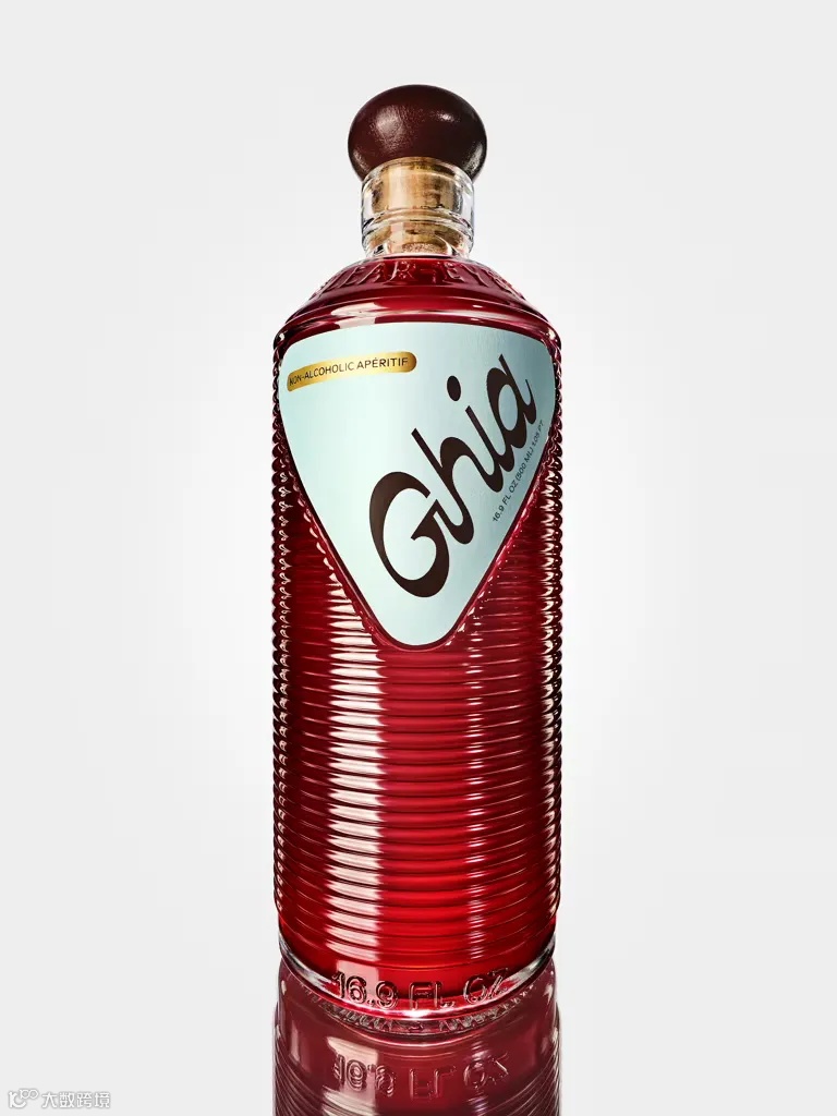 无酒精开胃酒品牌Ghia更新了其瓶装开胃酒的包装,新的包装瓶由Ghia创意团队Willo Perron和Brian Roettinger共同设计,为棱形玻璃杯,瓶身上印有该品牌的标语之一“Clear Eyed & High Minded”。Ghia的创始人Masarin分享道:“我们一直希望我们的瓶子除了被作为Ghia酒瓶之外还能有新的用途。客户将它们用作花瓶、水瓶、橄榄油瓶,甚至用于盛放自制香草精。因此我们还做了可重复使用的贴纸,客户可以给放在瓶子里的任何东西贴上标签。”