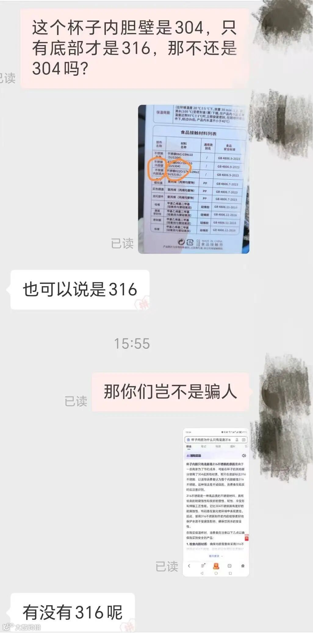 先联系客服,直接发证据+提诉求,话术参考:“我买的保温杯宣传316不锈钢,实物无标识(附对比图),根据《消费者权益保护法》,要求退货款159元+赔偿200元,3天内答复,否则走平台和12315投诉。”