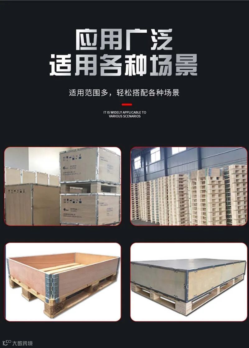 主要用于围板箱/木箱/塑料周转箱打包安装,兼容欧标/美标托盘,支持多层堆叠存放,仓库空间利用率提升40%。